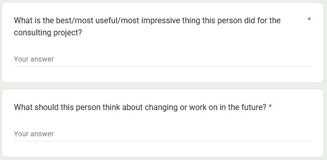 and then they are asked to provide specific positive and negative comments to each of their colleagues.